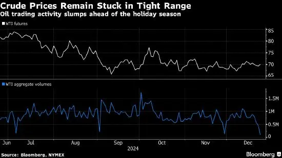 WTI原油總交易量遠低于日均水平,在市場因年底假期而休市之際可能會持續低迷。