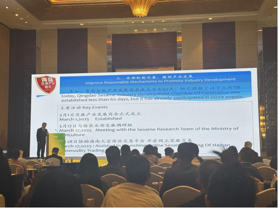 會上,青島西海岸新區芝麻發展商會會長趙彥華深入分析了當前芝麻行業現狀及四大痛點,介紹了青島西海岸新區芝麻發展商會成立以來的一系列成果。趙會長表示當前芝麻行業的重要創新成果之一——海南大宗商品交易中心的“三位一體”芝麻交易模式,將于5月份正式向市場推出。該模式依托海南自由貿易港“零關稅”“低稅率”政策優勢,整合現貨交易、價格指數、供應鏈金融三大核心功能,通過數字化交易平臺整合全球供需信息,有效降低貿易成本、提升結算效率;借助供應鏈金融工具,為中小微企業提供融資支持,著力解決行業資金周轉痛點,推動芝麻貿易向規范化、高效化、國際化邁進,對于當前的芝麻行業痛點提供“海南大宗”解決方案。