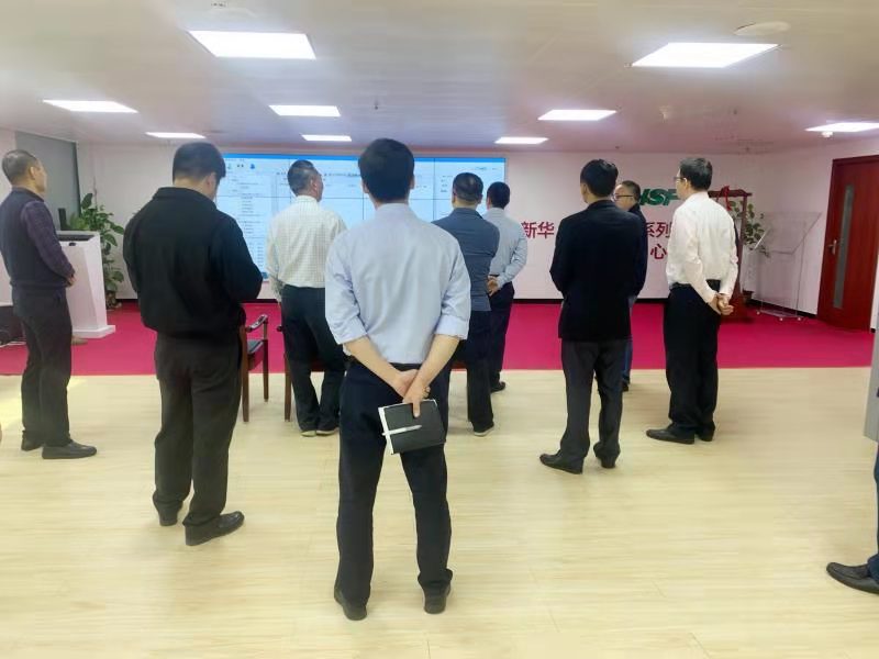海南大宗總經理潘黎明(左三)向海南省地方金融監管局副局長周立超(左四)一行講解交易情況
