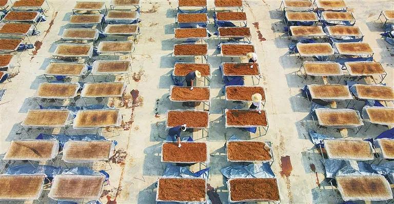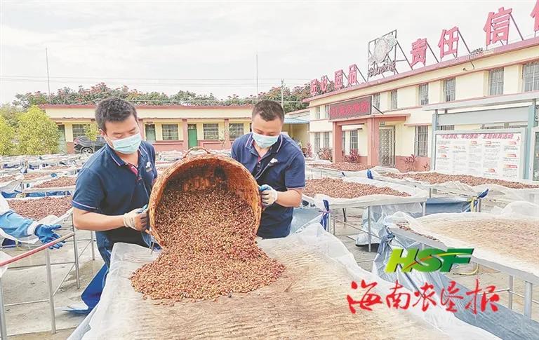 海墾大豐咖啡產業集團工人在晾曬干燥咖啡豆。大豐咖啡產業集團供圖