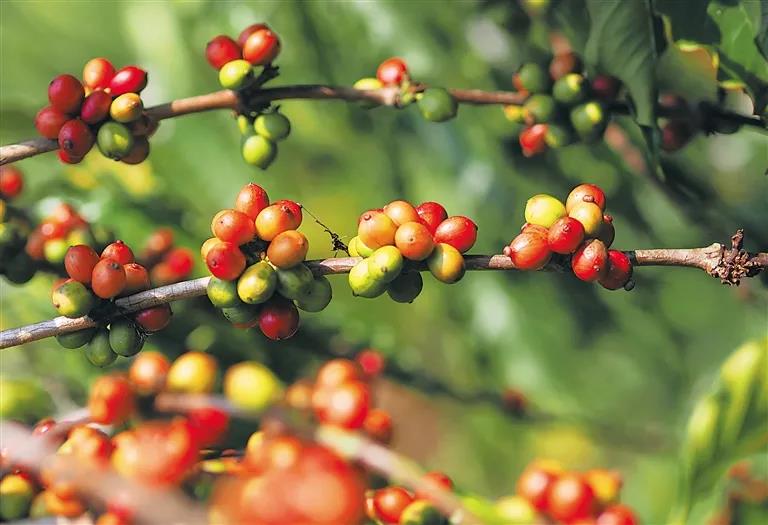 大豐咖啡種植基地里的咖啡果陸續成熟。袁琛 攝